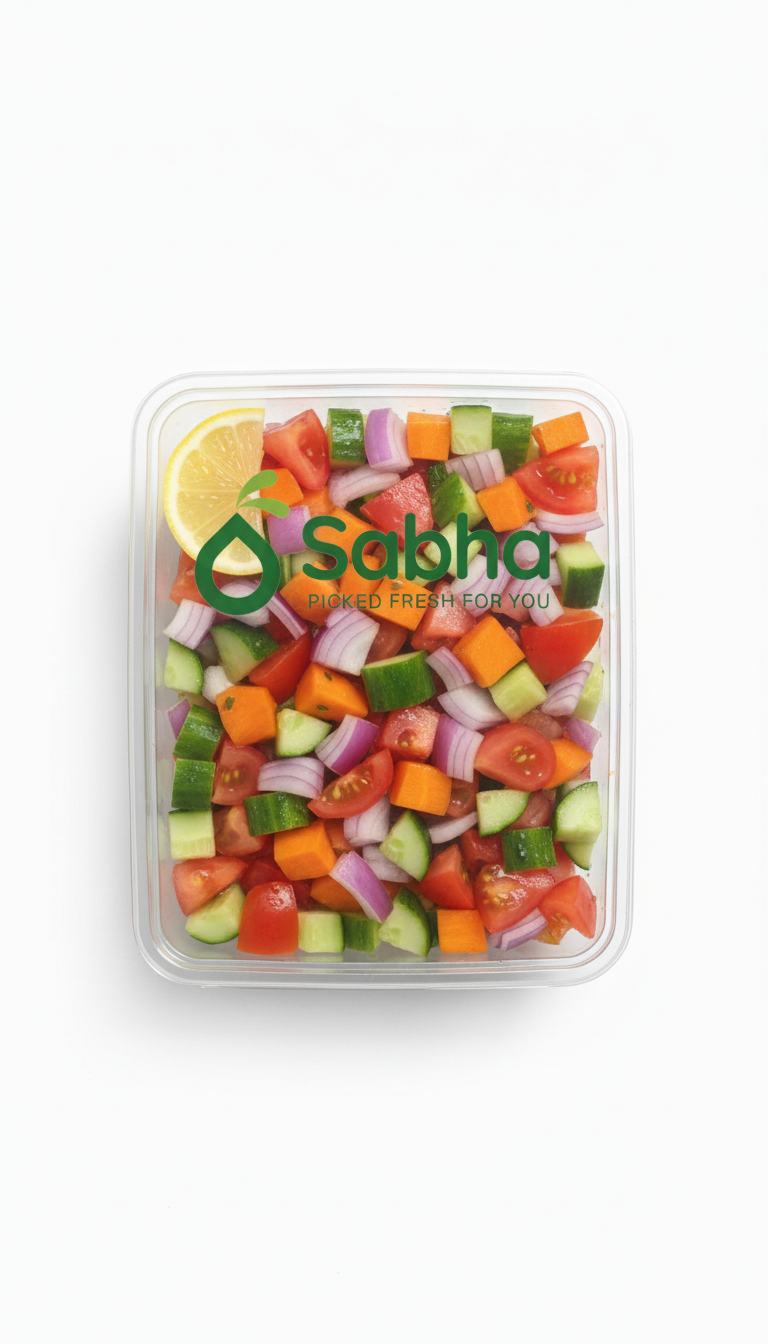 سلطه خضره فريش / المكونات(طماطم -خيار-جزر-فلفل-بصل-خضره-ليمون)
